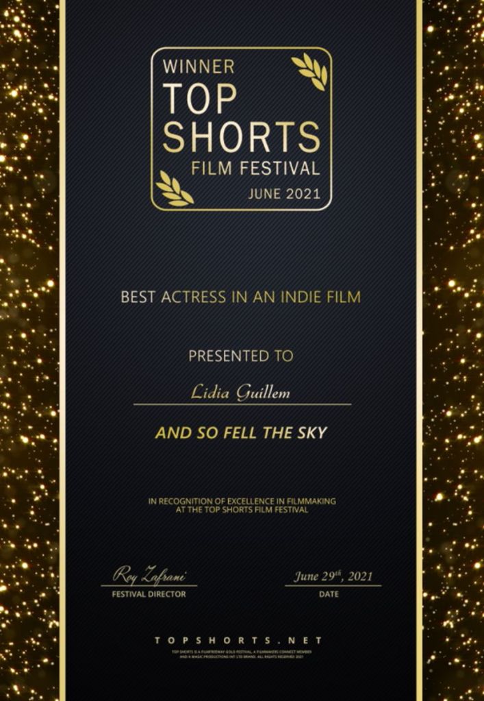 Gracias a este corto he ganado mi primer premio como actriz en el festival TOP SHORTS June 2021 (Best Actress in an indie film).